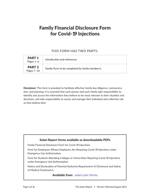 Family Financial Disclosure Form for COVID-19 Injections