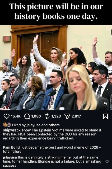 3. U.S. Attorney General: Pam Bondi Embraces the Red Button: Justice Be Damned if the Dow is Over 50,000