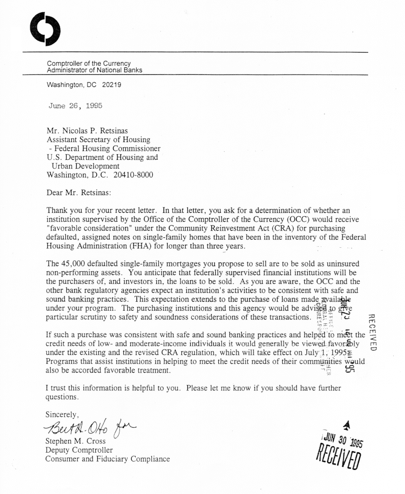 Corporation (FDIC), and the Federal Reserve. Letters from these