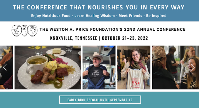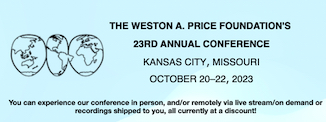 | October 21-23, 2022 THE WESTON A. PRICE FOUNDATION'S 22ND ANNUAL CONFERENCE ![]() | CATHERINE AUSTIN FITTS: BANQUET KEYNOTE SPEAKER - THE WISE TRADITIONS OF BUILDING FAMILY WEALTH More Information: HERE |