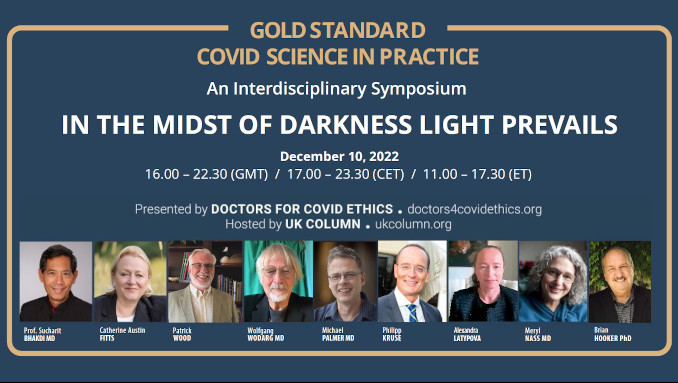 | December 10, 2022 Doctors for Covid Ethics Symposium 5 In the Midst of Darkness Light Prevails: An Interdisciplinary Symposium ![]() | View: HERE Hosts: Catherine Austin Fitts, Meryl Nass, M.D., Brian Hooker, Ph.D., P.E., Polly Tommey, Michael Palmer, MD, Prof. Sucharit Bhakdi, MD |