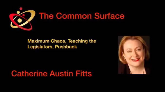 | January 15, 2022 Catherine Austin Fitts joins Greg Hunter on USA Watchdog: Headed for a Digital Concentration Camp – Catherine Austin Fitts | Catherine Austin Fitts (CAF) says the central bankers want nothing short of “a complete digital control system.” CAF explains, “We have what we have been building for the last 20 or 30 years, and it’s getting much more obvious, but it’s been covert most of the time. . . . . INTERVIEW |
