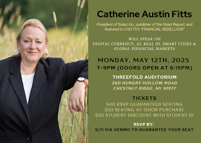 | November 7-9, 2025 Guest Speaker: Catherine Austin Fitts ![]() | View information HERE. |