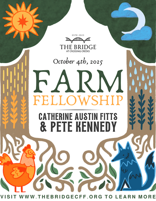 Saturday, October 4, 2025![]() | Guest Speakers: • Catherine Austin Fitts • Pete Kennedy To learn more about this Crossing Creeks Farm Event and register, please visit their website at www.crossingcreeks.com. |